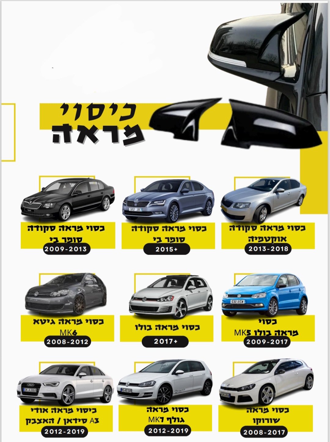 כיסוי מראות איכותי לרכב, עשוי חומר עמיד לשמירה על מראה יוקרתי והגנה לאורך זמן.