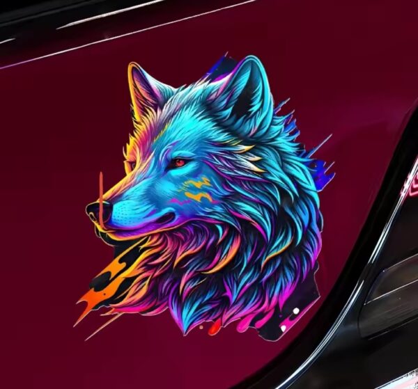 🏷 מדבקת סיליקון לקישוט הרכב זאב צבעוני