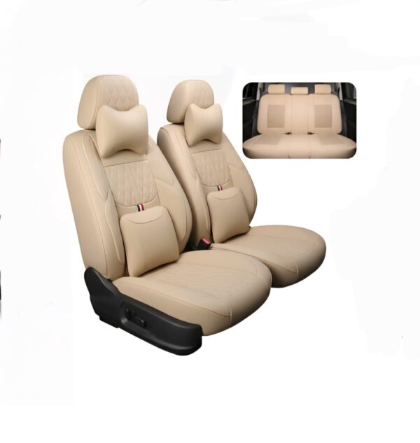 ריפודי עור לרכב כיסויים למושבים דגם – Royal Beige Edition – גוון בז עם כריות תמיכה לגב ולצוואר