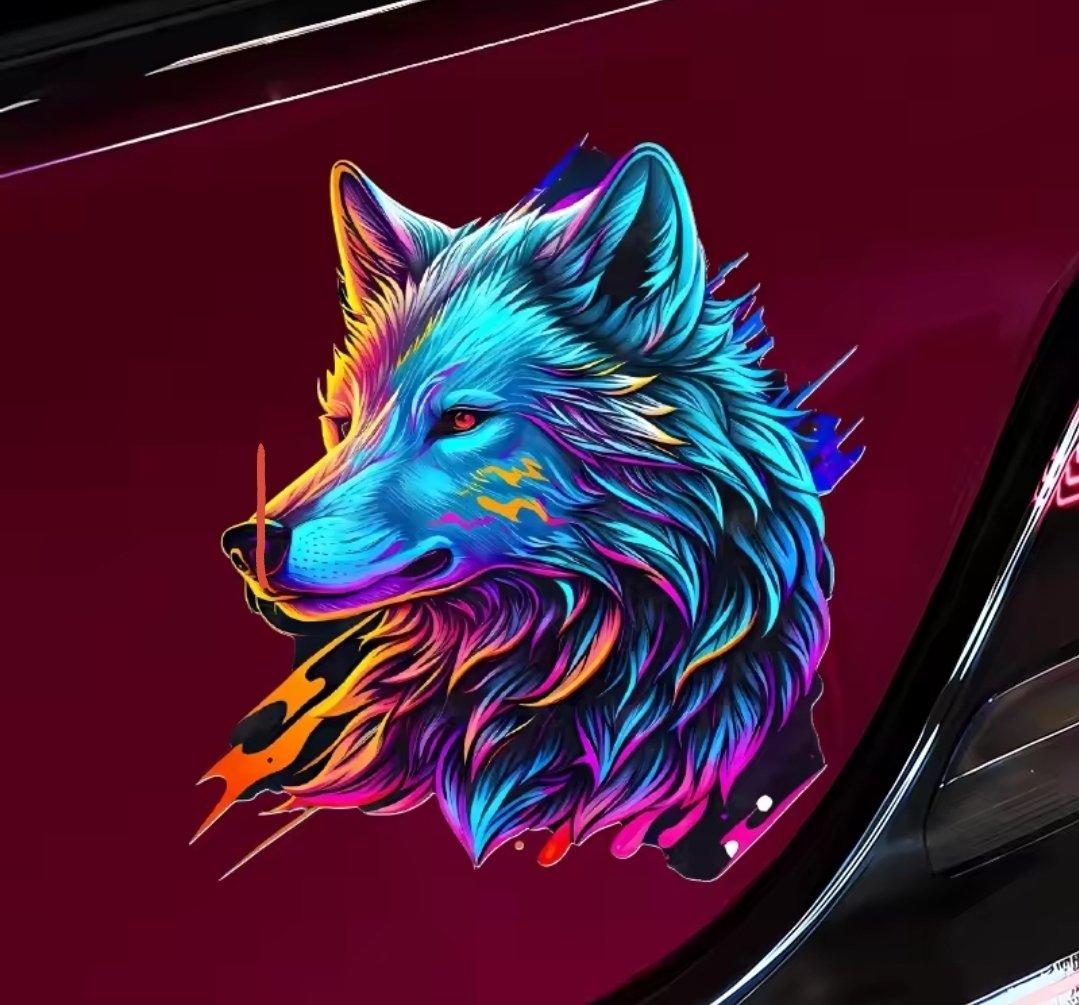 מדבקת סיליקון לקישוט הרכב זאב צבעוני